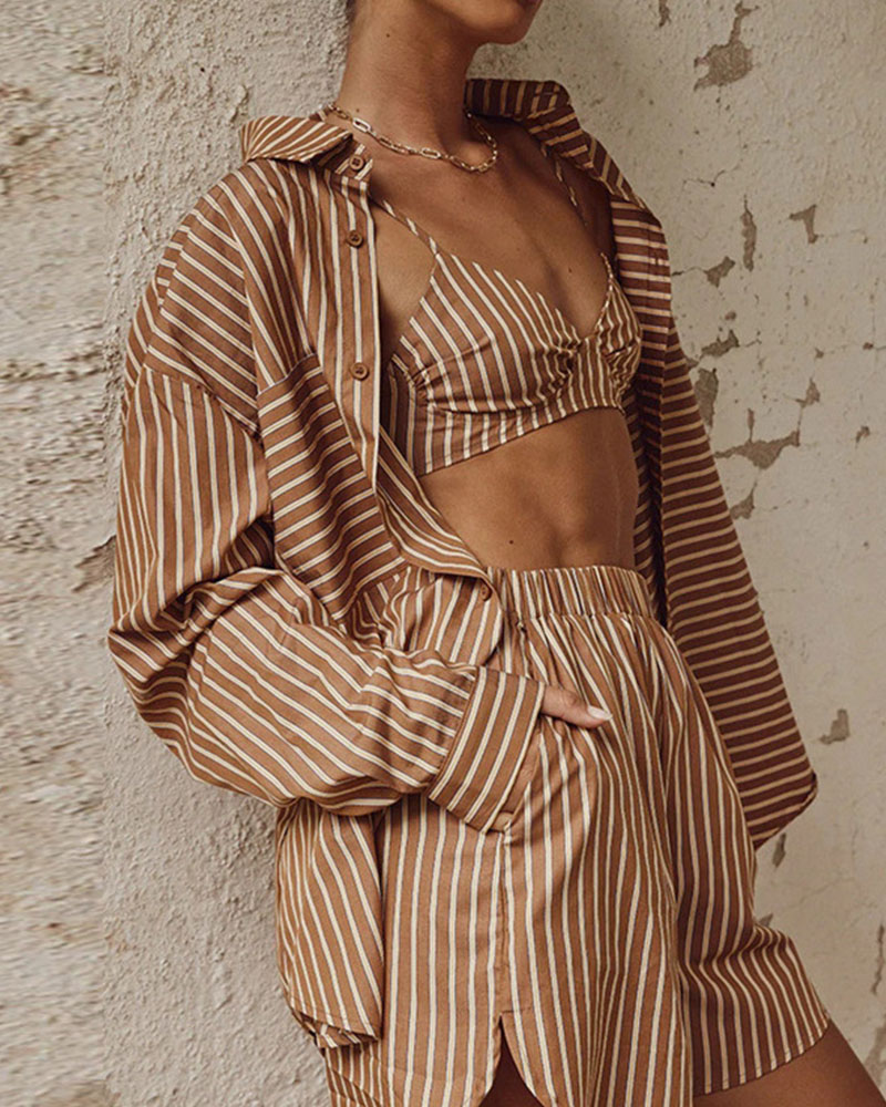 Introducing the Emary Minimalist Elegant Set, a modern take on timeless sophistication. Designed for versatility and comfort, this three-piece set features a structured oversized shirt, a flattering bralette, and relaxed high-waisted shorts—perfect for effortlessly chic styling.